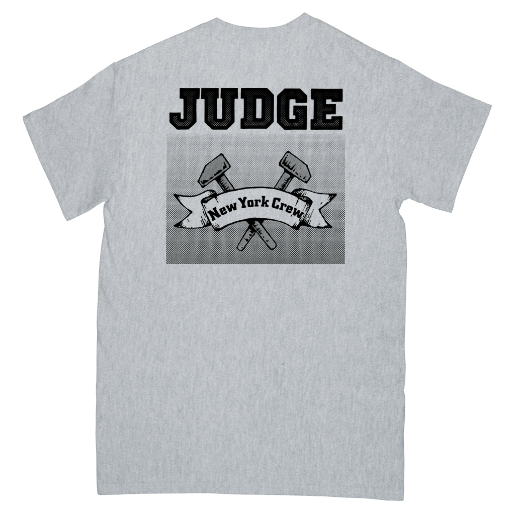 One-color front, one-color back, Judge "New York Crew" short sleeve t-shirt on heather grey, 100% cotton, American Apparel 1301 shirts.